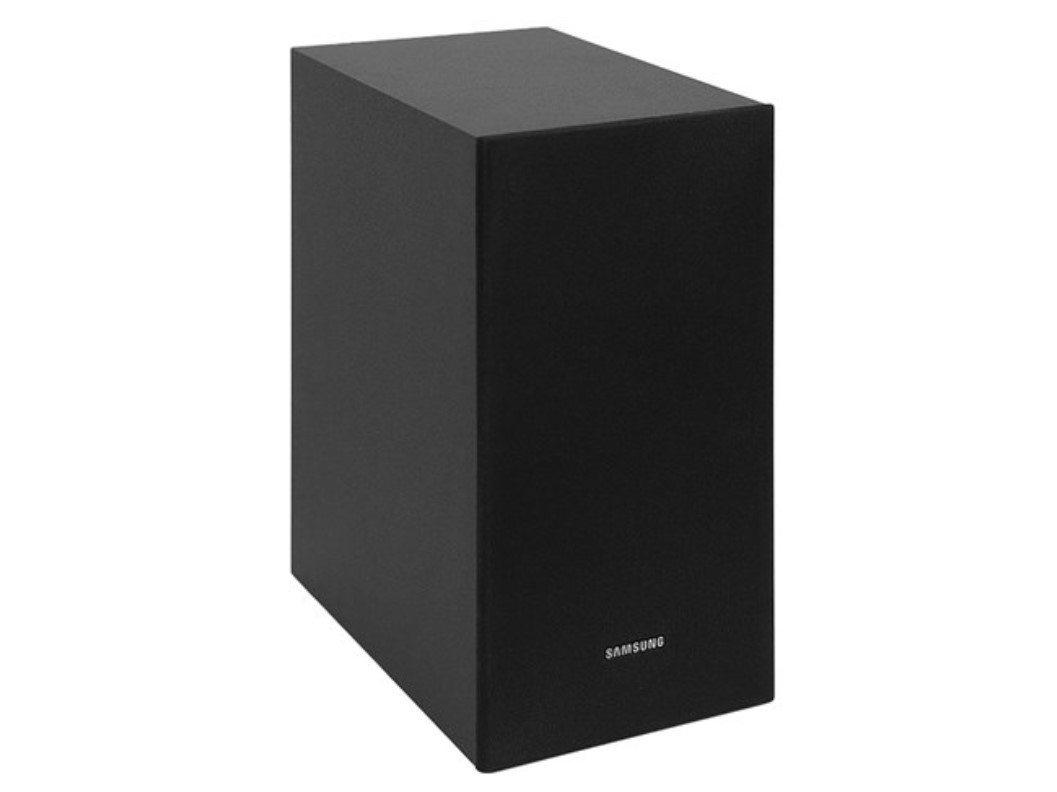 Thiết kế dạng hình khối, đường nét tinh tế sang trọng Loa thanh Soundbar Samsung 2.1 HW-T420 sở hữu thiết kế dạng hình khối màu đen, các cạnh góc vuông tinh tế hiện đại, đem
