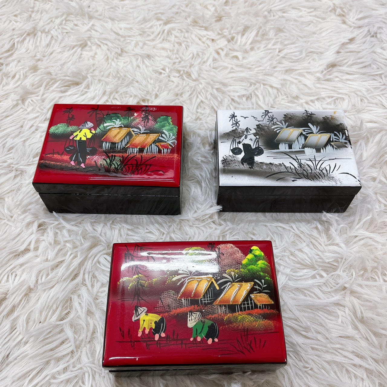 Mua tại TiktokLƯU Ý: Shop giao mẫu ngẫu nhiên, khách hàng muốn lựa chọn mẫu vui lòng nhắn tin riêng cho shop nhé ạ. HỘP ĐỰNG NỮ TRANG SƠN MÀI HÌNH CHỮ NHẬT Vỏ gỗ sơn mài vẽ tay thủ công tinh tế, nội thất bọc vải nhung đỏ sang trọng, thiết kế trang nhã, trẻ trung, thanh lịch ✪ Kích thước: 8x11x5cm ✪ Có gương phía trong để kết hợp trang điểm Hàng Việt Nam xuất nhập khẩu HÀNG CHUẨN CHẤT LƯỢNG ẢNH SHOP TỰ CHỤP, SẢN PHẨM NGOÀI ĐẸP HƠN. Luôn có nhiều ưu đãi cho Khách hàng mới và Khách hàng thân thiết Cam kết hàng giao đúng mẫu đăng trên gian hàng Sản phẩm có sẵn, thời gian gửi hàng nhanh chóng tới đơn vị vận chuyển CÓ ĐỊA CHỈ TRỰC TIẾP ĐỂ CÁC BẠN TỚI LỰA CHỌN THỎA THÍCH Uy tín - chất lượng luôn được đặt lên hàng đầu.