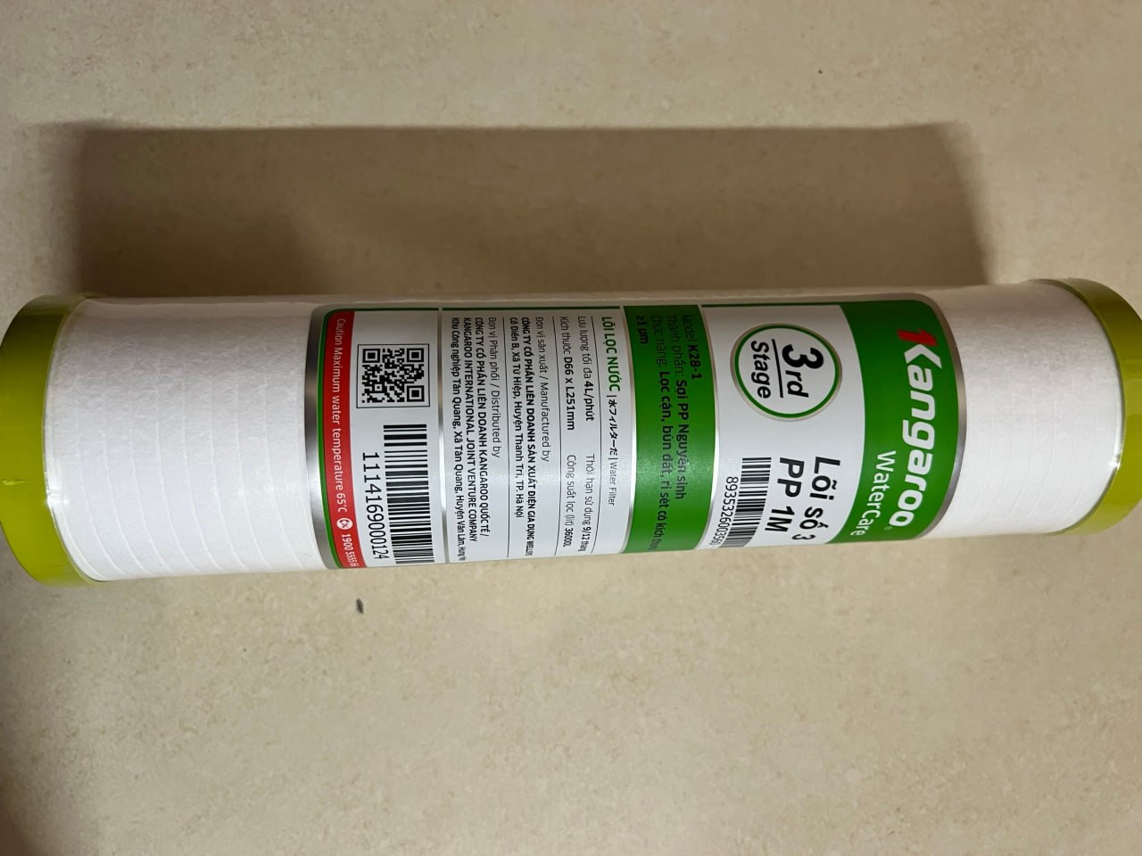 Mua tại Tiktok- Lõi Số 3 - 10 PP - 1 Micro Kangaroo K 28 - 1 làm bằng sợi bông PP, có kích thước tầm 1 micro, dễ dàng lọc sạch các tạp chất có kích thước lớn hơn 1 micro còn sót lại sau quá trình lọc ở lõi số 1 và 2.