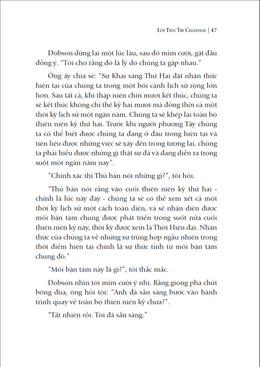 Không hàn lâm, khó hiểu như những quyển sách cùng chủ đề, bằng ngôn ngữ bình dị, “Lời tiên tri Celestine” đã truyền tải thông điệp về mặt tâm linh một cách mới mẻ dưới dạng tiểu thuyết, lôi cuốn người đọc từ đầu đến cuối.