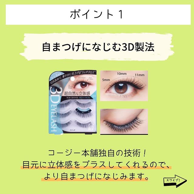 ✨Lông Mi Giả Hiệu Ứng 3D Tự Nhiên Koji 01 Rich Cross, Dày Mi, Dài Mi Ở Góc Ngoài (Cho Mắt Một Mí), Nhập Khẩu Nhật Bản