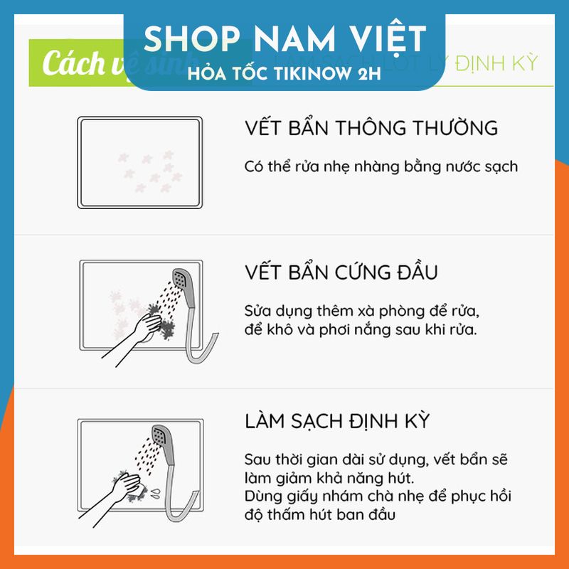️ Cách sử dụng: Đế lý có thể chùi rửa bằng nước hoặc xà phòng. Đem phơi nắng sau mỗi lần sử dụng để nhanh chóng phục hồi lại độ thấm hút.
