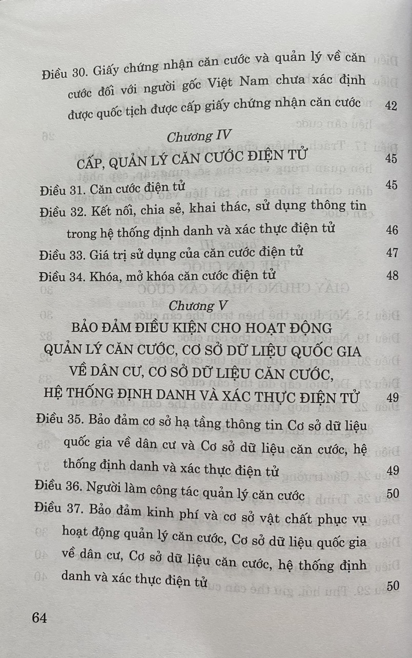 Mua tại TiktokLUẬT CĂN CƯỚC ( Theo Luật số 26/2023/QH15 áp dụng từ ngày 01-07-2024) Luật này quy định về Cơ sở dữ liệu quốc gia về dân cư, Cơ sở dữ liệu căn cước; thẻ căn cước, căn cước điện tử; giấy chứng nhận căn cước; quyền, nghĩa vụ, trách nhiệm của cơ quan, tổ chức, cá nhân có liên quan.