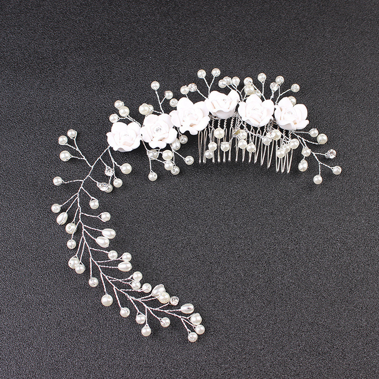Thiết kế tinh tế, tỉ mỉ với những bông hoa trắng tinh khôi và ngọc trai chuỗi kết dài mềm mại, dễ tạo hình với nhiều kiểu tóc, búi tóc, tết tóc hay thả tóc dài đều rất xinh đẹp.
