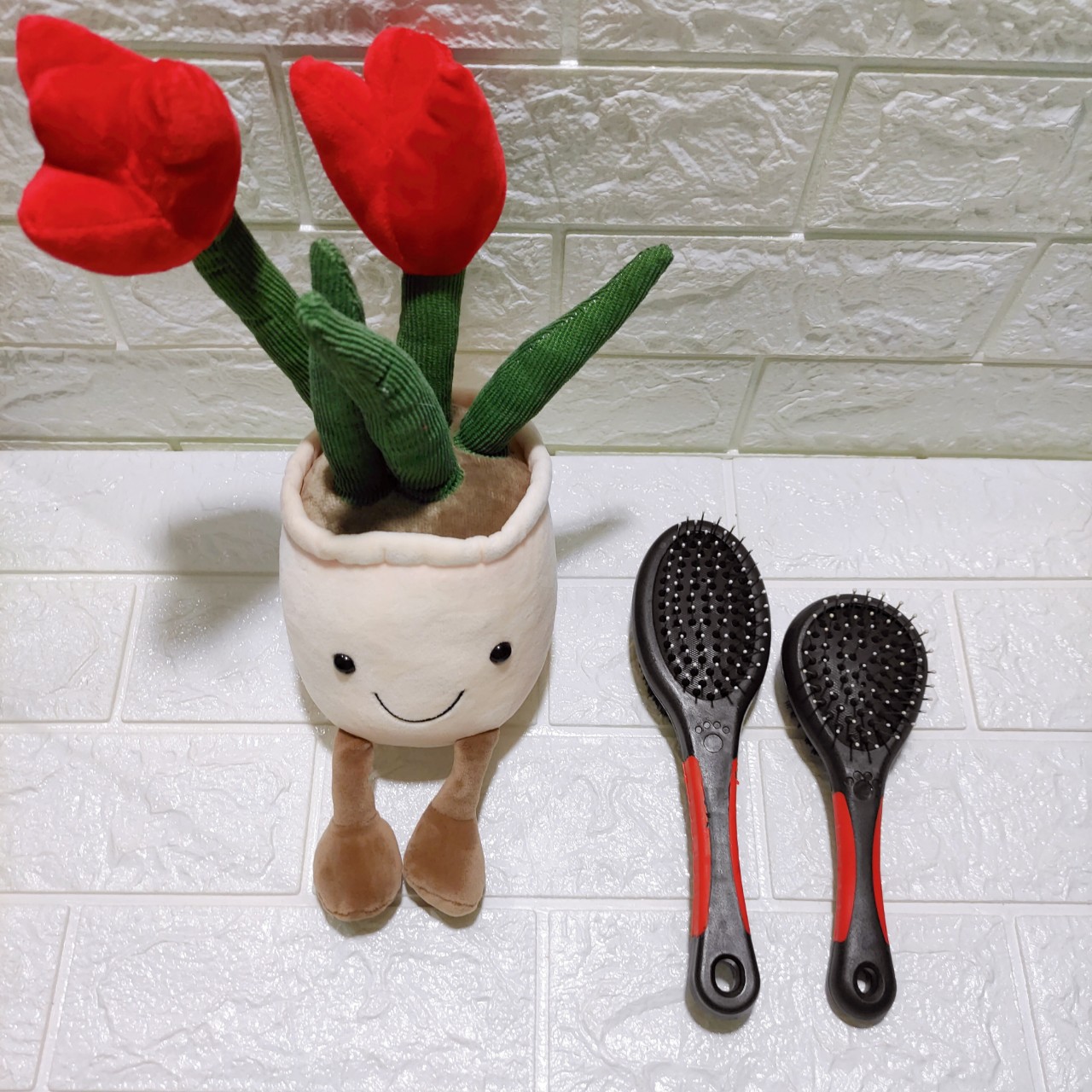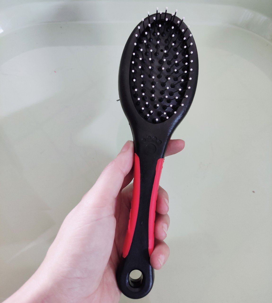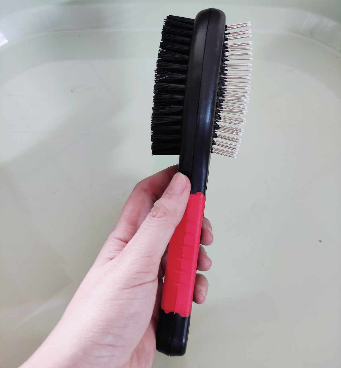 LƯỢC CHẢI XÙ HAI MẶT DÀNH CHO CHÓ MÈO CƯNG - Màu đen phối đỏ. - Lược chải lông chó mèo có hai mặt rất tiện ích: một mặt sợi thưa và một mặt nhiều