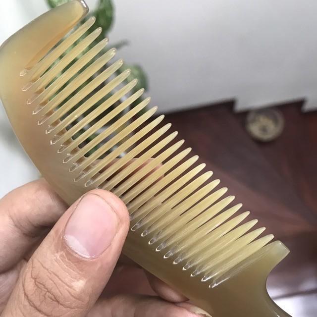 Đây là chiếc lược sừng cao cấp đặc biệt, dày và rất đẹp, răng thưa, đầu răng tròn, vừa để chải các loại tóc xoăn, xù, rối và massage đầu giúp tuần hoàn và lưu