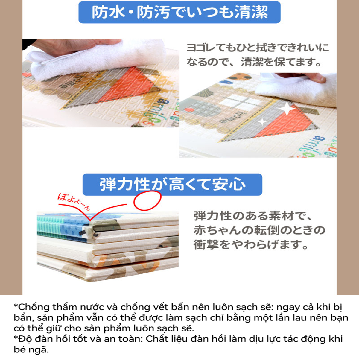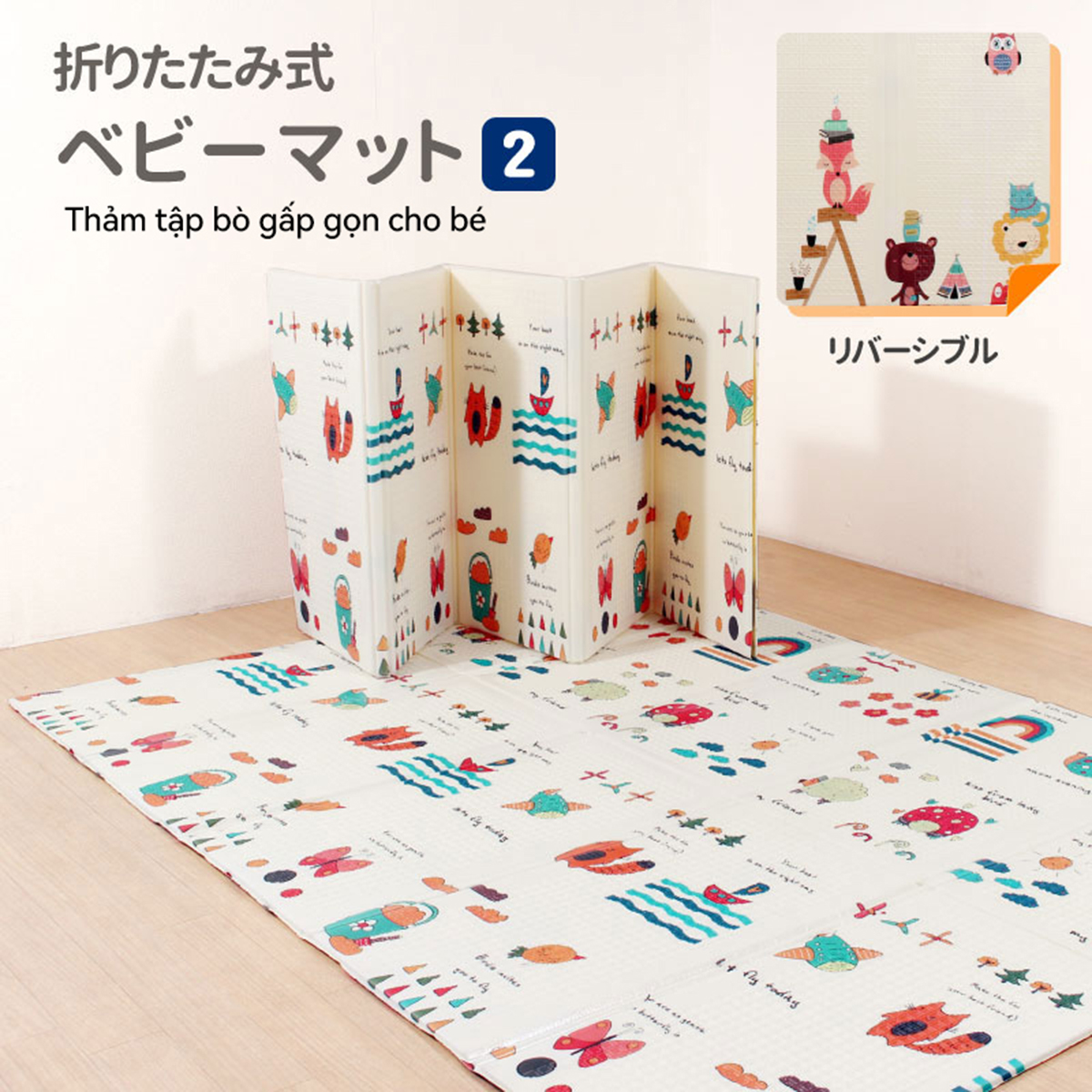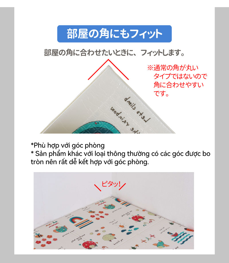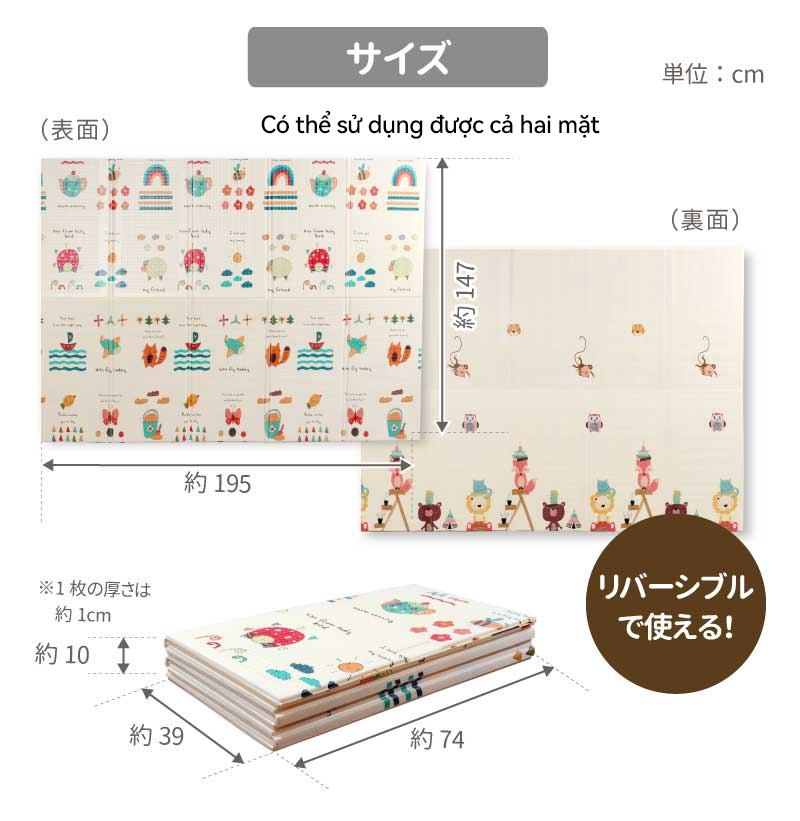 Thảm xốp cho bé Umoo Gấp gọn, thảm lót cho bé chơi Tính năng vượt trội của thảm gấp 2 mặt cao cấp + Chất liệu xốp XPE, 2 mặt silicon không mùi. An toàn