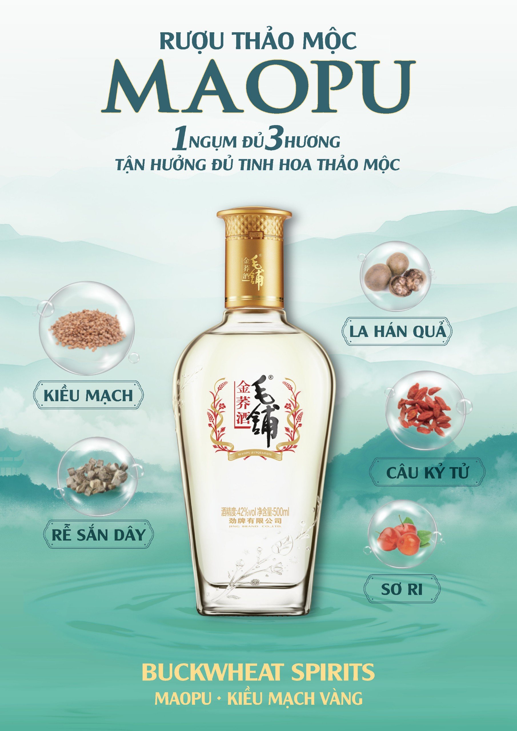 RƯỢU MAOPU KIỀU MẠCH MẠCH VÀNG, GIÚP TĂNG CƯỜNG SỨC ĐỀ KHÁNG, TĂNG CƯỜNG HỆ MIỄN DỊCH - Độ cồn: 42% - Dung tích: 500ml - Rượu trắng, nước suối tinh khiết và 5 loại