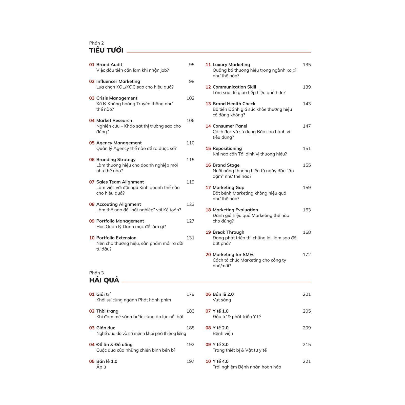 - Lời khuyên dễ hiểu và dễ áp dụng Tác giả không chỉ chia sẻ các khái niệm và kiến thức phức tạp mà còn cung cấp những cách tiếp cận và giải pháp rất cụ thể và thực tế. Các bài học như cách quản lý kênh phân phối, cách xây dựng chiến lược định giá, hay việc tổ chức sự kiện đều được trình bày bằng những câu chuyện và ví dụ dễ hiểu. Đây là một cuốn sách ""hướng dẫn hành động"", giúp người đọc từ mức cơ bản có thể áp dụng ngay vào công việc hàng ngày mà không phải mất nhiều thời gian tìm hiểu thêm.