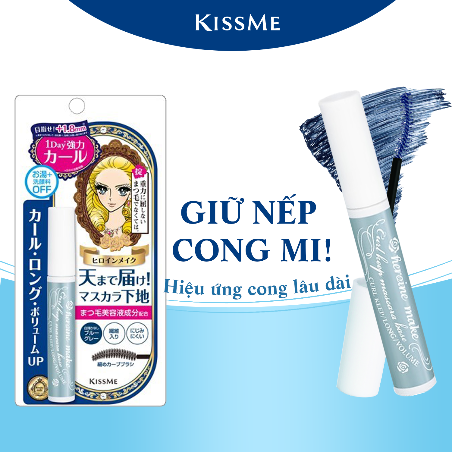 Mascara Lót Nền Siêu Nâng Cong Mi Dạng Màng Film Chống Trôi Siêu Bền Trong 24h Kissme Heroine Make Curl Keep Mascara Base Thông tin sản phẩm: Số Lô: In trên sản phẩm Thương