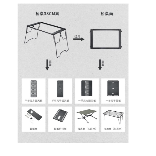 Mô tả sản phẩm - Mặt bàn cắm trại: Đây là phụ kiện chính của sản phẩm, được thiết kế để sử dụng trong các hoạt động cắm trại. ️ Chi tiết sản phẩm