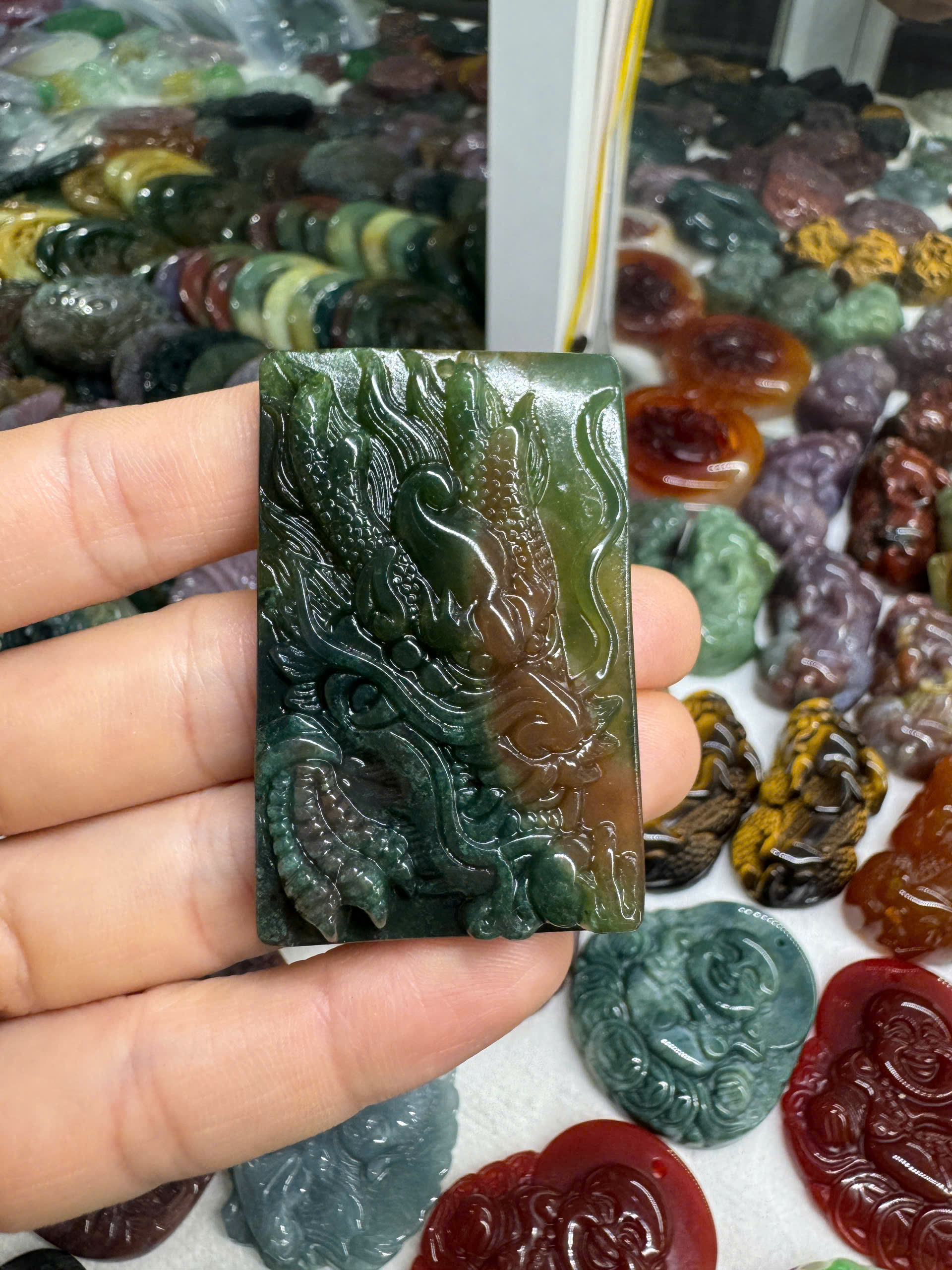 🐉Mặt dây chuyền băng ngọc thủy tảo chạm khắc rồng