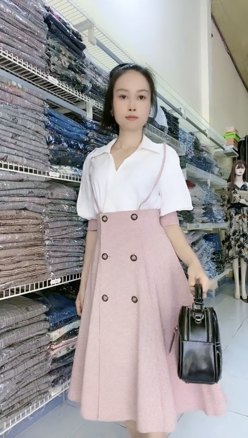 Đầm eo cao giả set áo sơ vin với chân váy, kiểu tôn eo, chất liệu xuất sắc Mã: DZEA001 Màu: Hồng + Đen Chất liệu: Polyester Số đo vòng1/vòng2(cm): 89-giãn nhẹ/72-giãn nhẹ
