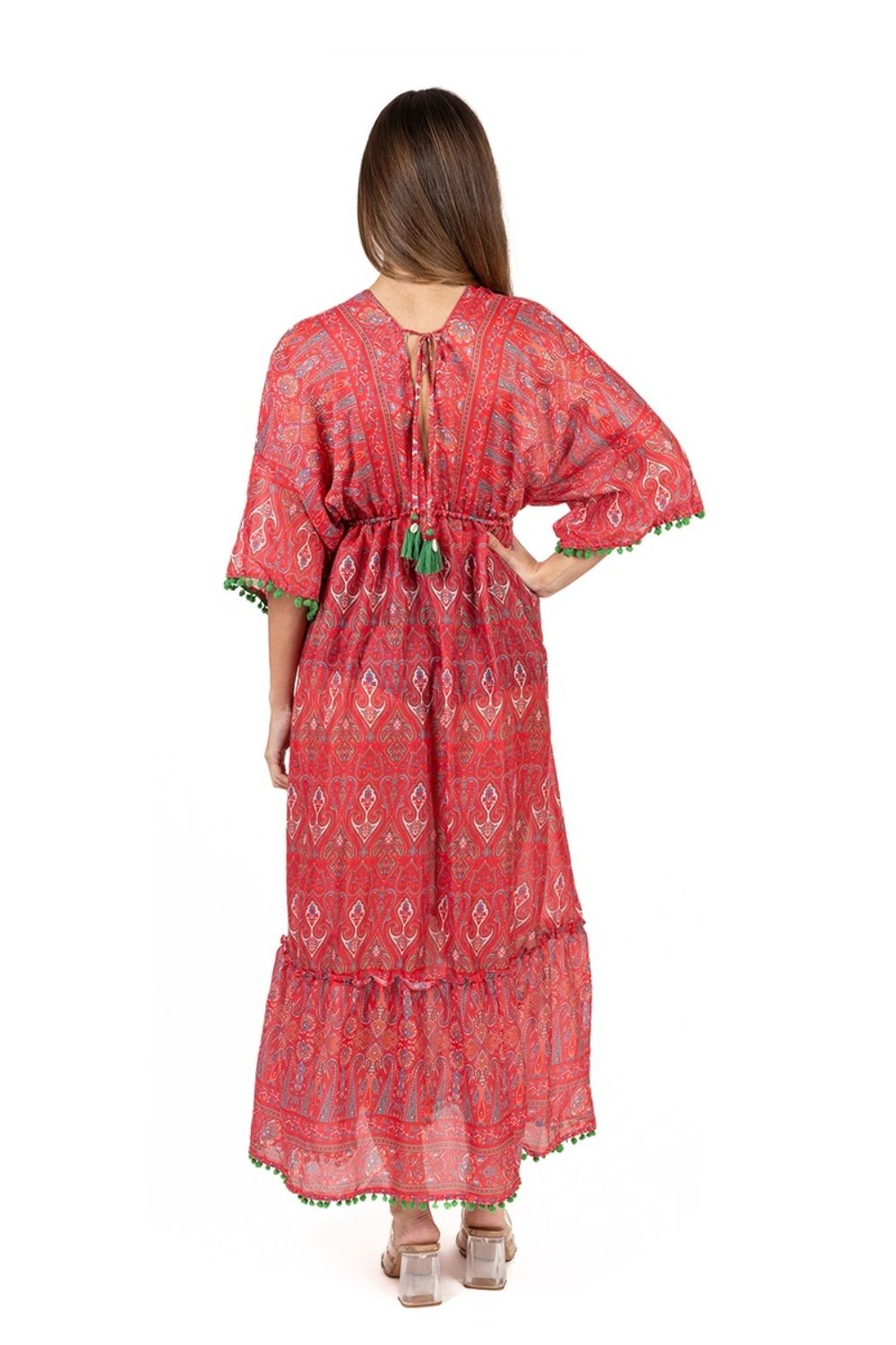 Maxi Boho Dài Tay Kết Cườm Cotton Isla Bonita, chất liệu cotton cao cấp, mềm mại, nổi bật phần ngực trước kết cườm sang trọng. Họa tiết thổ cẩm độc đáo. Phom suông. Dài Đầm