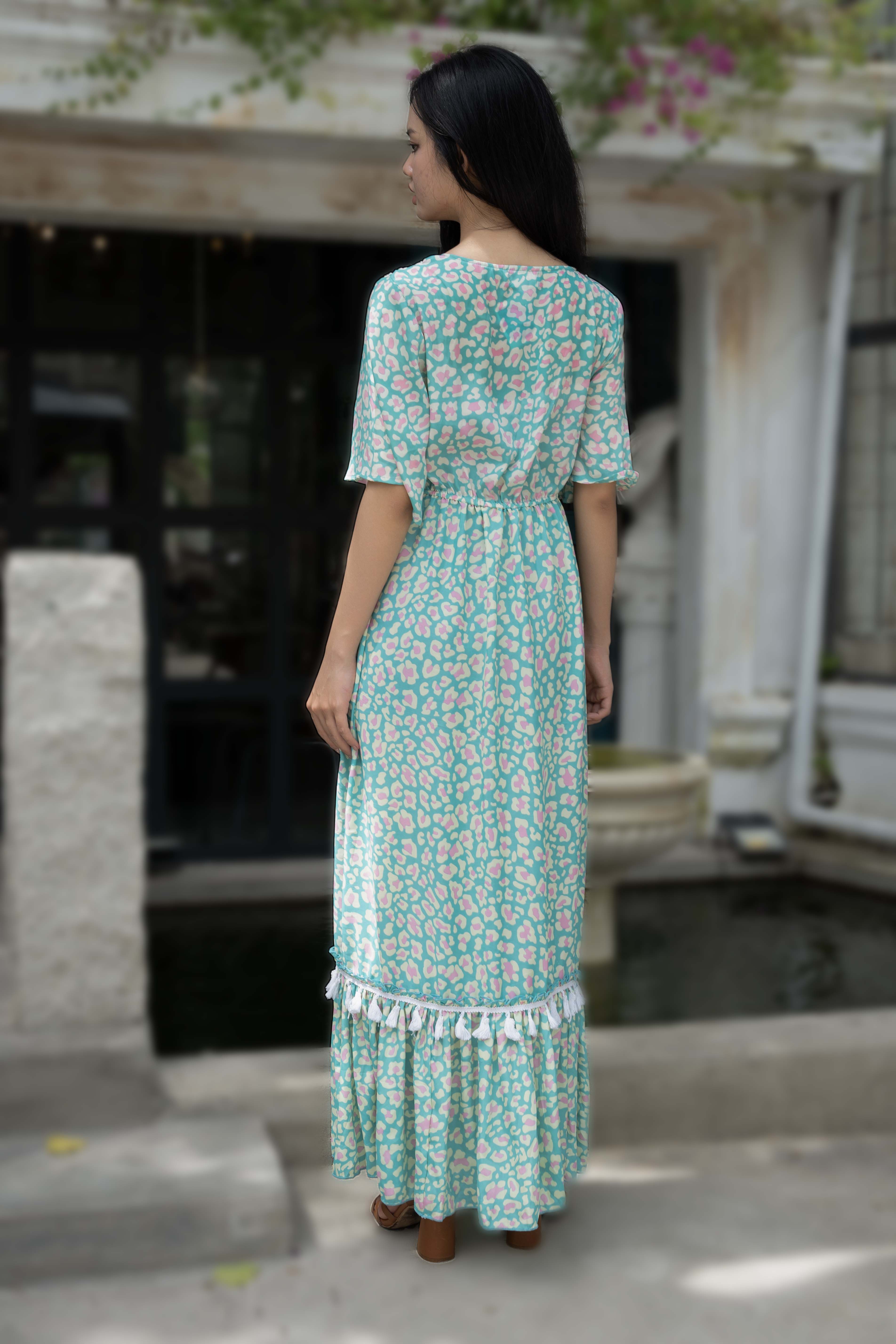 Maxi Cotton Cao Cấp Luna Llena, Chất cotton mềm mại, dày dặn, họa tiết trang nhã. Cut out phần lưng sau. Dài 130 (40x130) Phù hợp: Dự tiệc, dạo phố, đi biển hoặc công sở.