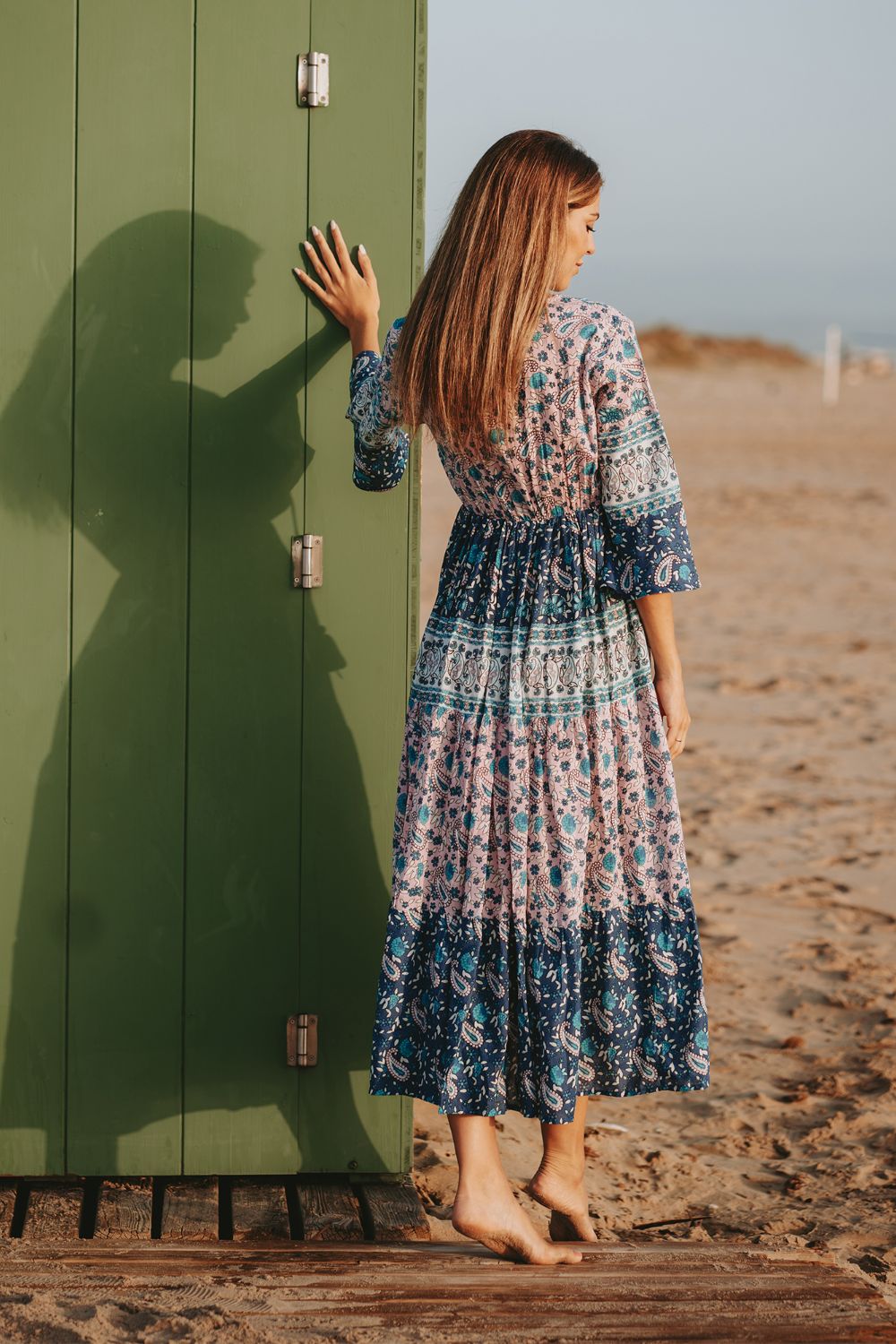 Maxi Cotton Cao Cấp Luna Llena, Chất cotton mềm mại, dày dặn, họa tiết trang nhã. Cut out phần lưng sau. Dài 130 (40x130) Phù hợp: Dự tiệc, dạo phố, đi biển hoặc công sở.