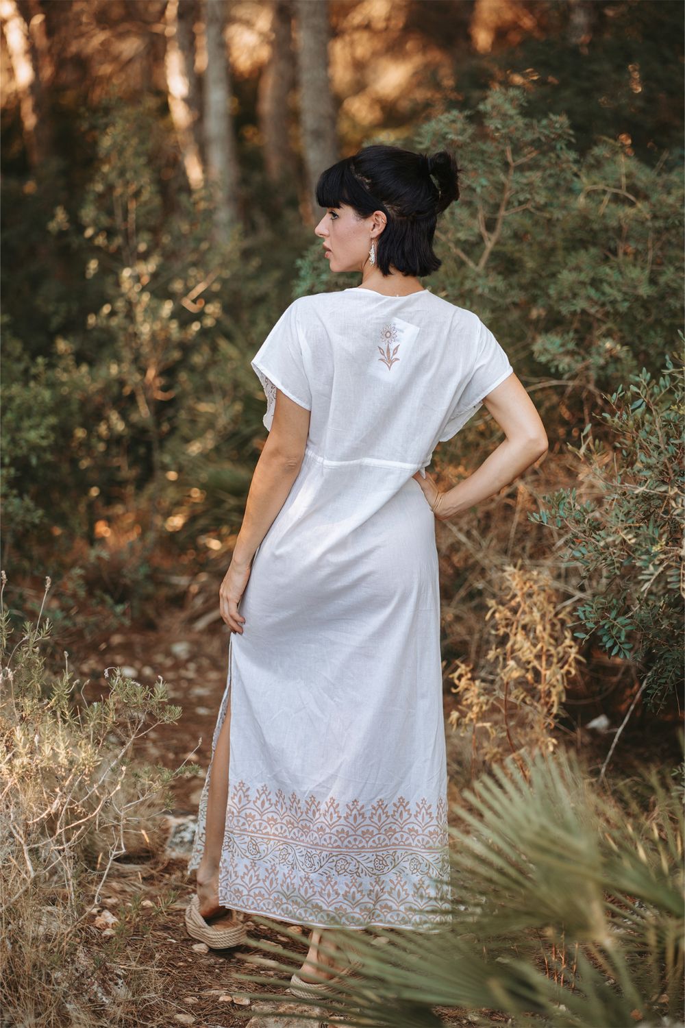 Maxi Cánh Dơi Trắng Cotton Isla Bonita, chất liệu cotton mềm mại, nền vải vẽ ánh kim cao cấp, mặc phối với quần short hoặc đồ bơi. Dài đầm 130cm (60x130) Phù hợp đi biển,
