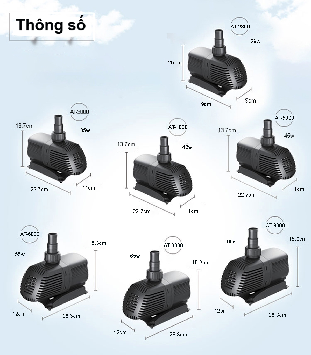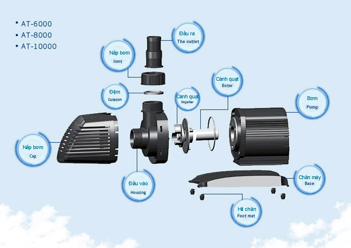 Máy bơm nước ATMAN AT3000 AT4000 AT5000 AT6000 AT8000 AT10000 là dòng máy bơm tiết kiệm điện đáng tin cậy và hiệu quả dùng để bơm nước, cấp nước cho các bộ lọc, ao cá, hồ cá, thác nước hoặc đài phun nước.
