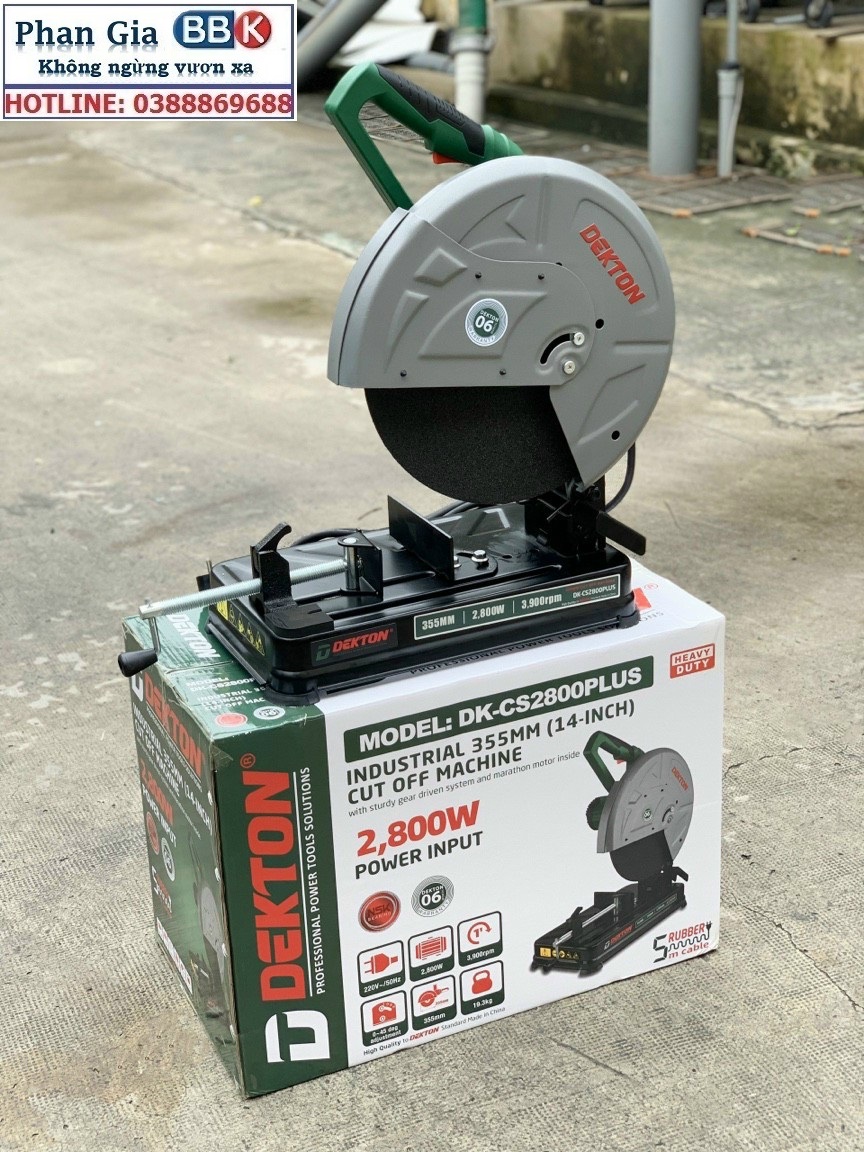 Máy cắt sắt DEKTON DK-CS2800PLUS 2800W là sản phẩm chính hãnġ của Dekton. (Dekton professtional power tools solutions). Máy là phiên bản nâng cấp của DEKTON DK-355 được thiết kế chuyên dụng dùng để cắt sắt, giúp tiết kiệm thời gian và sức lao động. Sản phẩm được sản xuất theo công nghệ hiện đại của Đức, có độ chuẩn xác cao, đảm bảo mang đến hiệu quả công việc tối ưu và thời gian sử dụng lâu dài.