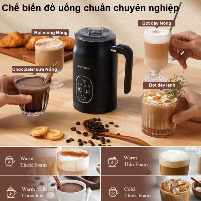 Mua tại TiktokMáy tạo bọt sữa cà phê, ca cao 4 trong 1 thương hiệu Anh Quốc Shardor MF0802 - Hàng cao cấp Máy tạo bọt sữa, cà phê, ca cao 4 trong 1 Shardor MF0802 là sản phẩm bán chạy trên thị trường đồ dùng quán cà phê nhờ vào tính năng ưu tú, thiết kế tinh xảo, độ bền xuất sắc, là sản phẩm không thể thiếu khi mở cà phê, quán trà sữa hay dùng cho gia đình. Tính năng tạo bọt sữa: