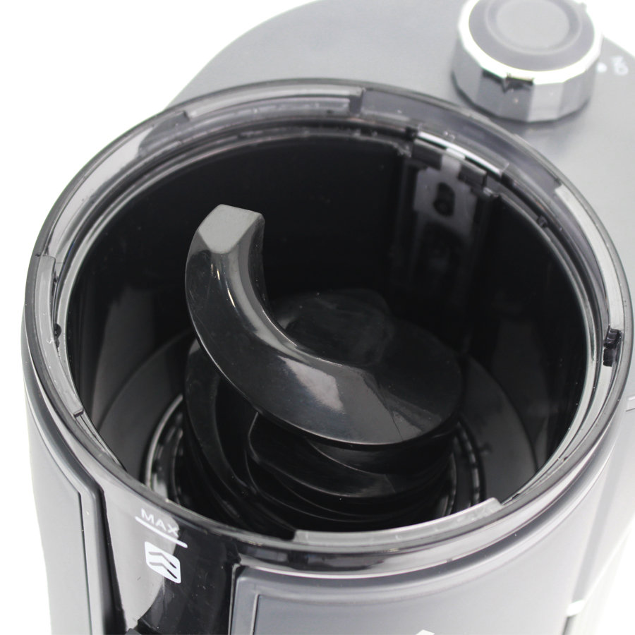• Trục ép xoắn ốc kết hợp lưới lọc 2 tầng được làm bằng nguyên liệu cao cấp, bền bỉ, cho ra lượng nước ép nguyên chất tối đa trong trái cây mà không lo bị cặn.
