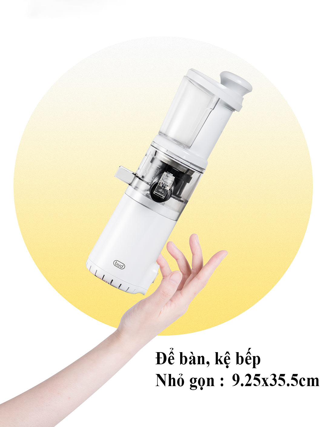 Máy Ép Chậm Trái Cây BUD Mini BJ08 - Tách Nước và Bã Ra 2 Phần Khác Nhau - Không Bị Cặn Gì Cả