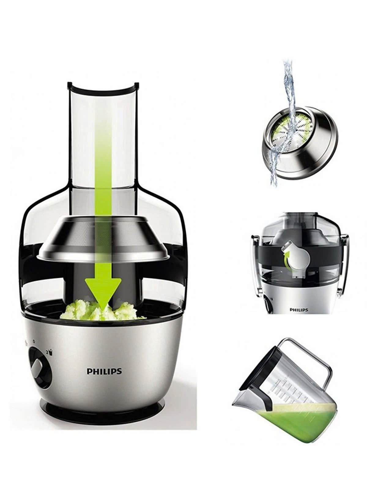 Máy ép trái cây Philips HR1832/00 hoạt động với công suất 500W với duy nhất 1 tốc độ ép tùy chỉnh bằng nút xoay đơn giản, trực quan cùng những tiện ích và tính năng an