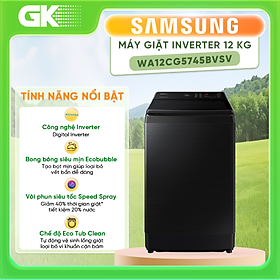 Mua tại TiktokMáy giặt Samsung Inverter 12 kg WA12CG5745BVSV có khả năng đánh bay vết bẩn cứng đầu hiệu quả nhờ công nghệ giặt bong bóng siêu mịn Eco Bubble, công nghệ Digital Inverter tiết kiệm điện năng, vận hành êm ái đảm bảo hiệu quả sạch sâu. Thiết kế - Máy giặt Samsung 12 kg WA12CG5745BVSV có kiểu thiết kế máy giặt cửa trên, kèm vỏ máy bằng chất liệu thép không gỉ phủ sơn tĩnh điện có độ bền tốt và đảm bảo tính thẩm mỹ cho máy trong suốt thời gian sử dụng.