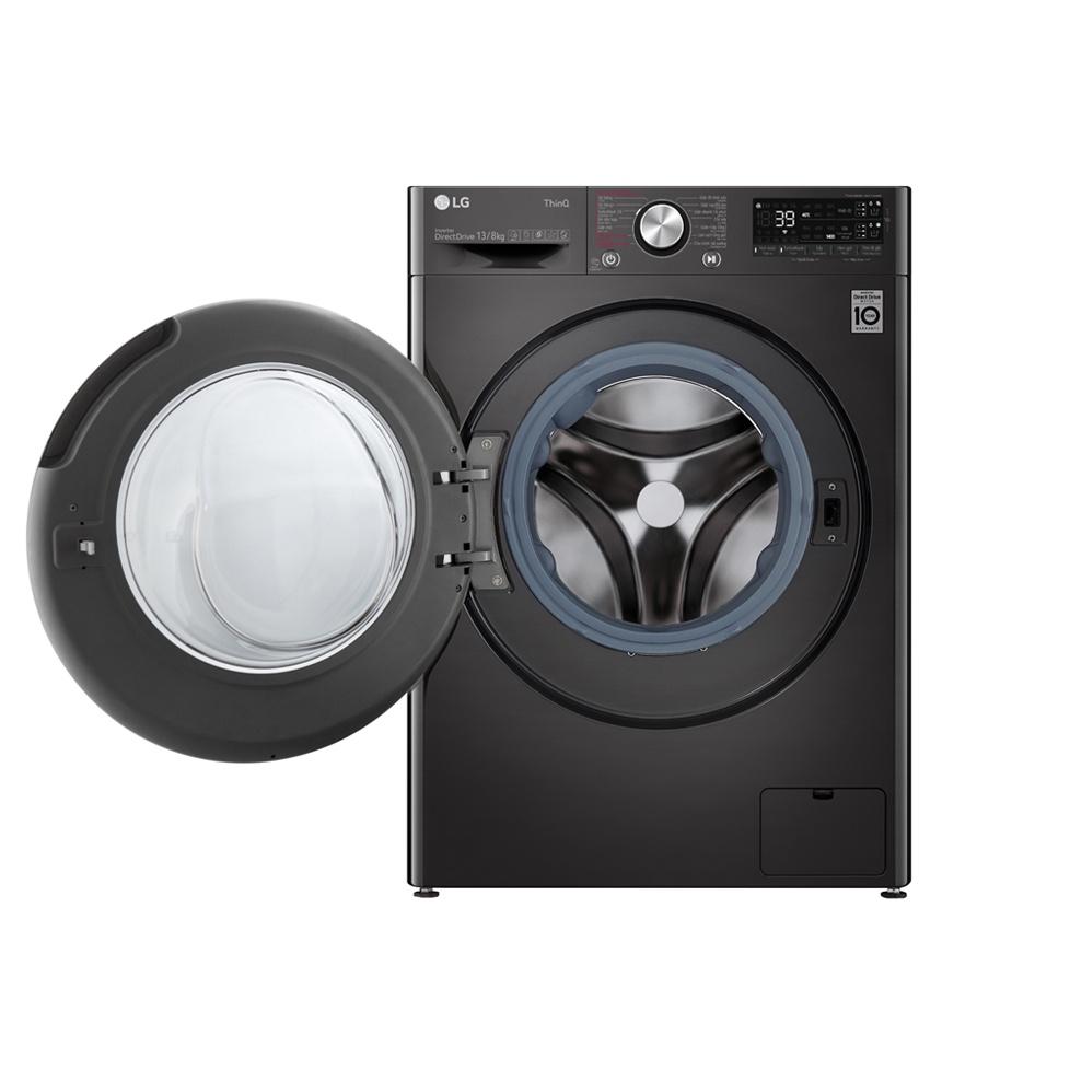 Tổng quan thiết kế - Kiểu dáng: máy giặt cửa trước - lồng ngang thiết kế vuông vức và sang trọng với tông màu đen thanh lịch, tạo điểm nhấn cho không gian nhà bạn. - Bảng điều