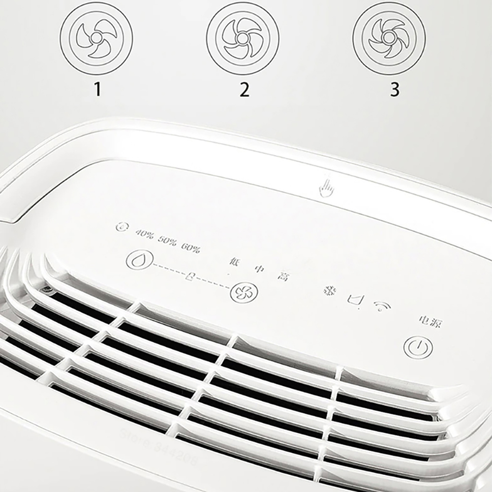 Ngoài ra, bảng điều khiển ở mặt trên được thiết kế khá trực quan, thân thiện và dễ vận hành, do đó kể cả người lớn lẫn trẻ em đều có thể thao tác sử dụng dễ dàng. Tuy nhiên, trẻ em vui lòng sử dụng dưới sự giám sát của người giám hộ để đảm bảo an toàn tuyệt đối. Mặt khác, người dùng cũng có thể chọn chức năng khóa trẻ em trên bảng điều khiển để ngăn các bé táy máy sử dụng thiết bị. Đặc biệt, khả năng hiển thị 3 màu sắc khác nhau ở xung quanh độ ẩm giúp thiết bị thể hiện sự thay đổi rõ ràng của độ ẩm để người dùng dễ dàng nhận biết và từ đó có những điều chỉnh phù hợp.