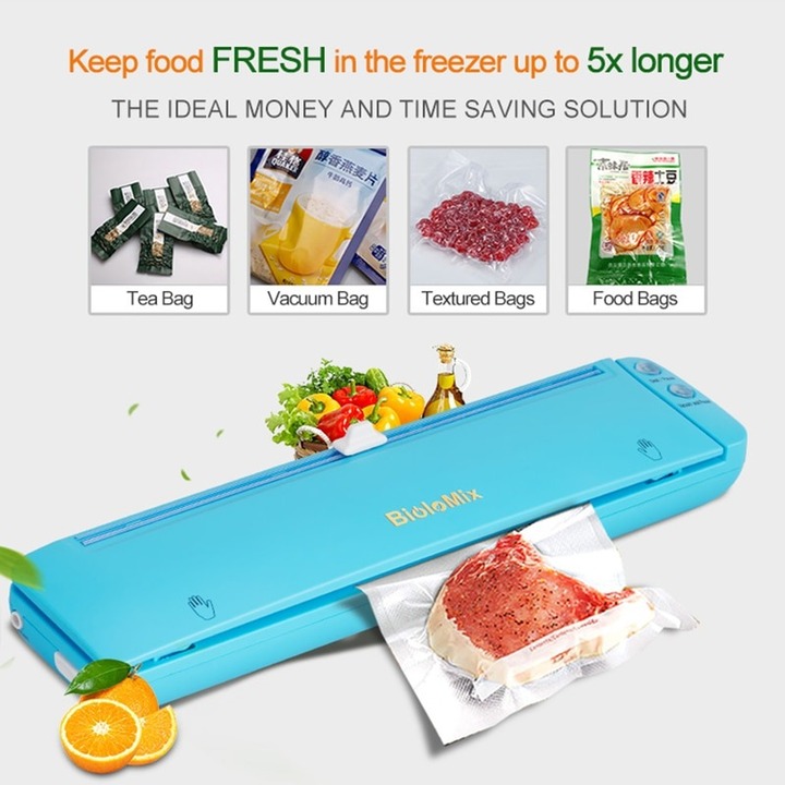 - Nấu ăn và chuẩn bị bữa ăn sẽ trở nên dễ dàng hơn, kinh tế hơn và nhanh hơn, với thực phẩm tươi sống đã sẵn sàng để được rã đông và sử dụng hoặc giữ tươi mới hơn những thực phẩm được để lưu trữ trong tủ đông, mà không bị ảnh hưởng tới chất lượng thực phẩm. Bảo vệ sức khỏe của bạn và những người thân yêu trong gia đình bằng những thực phẩm tươi ngon và bảo đảm – Tiết kiệm chi phí & Giữ tươi ngon: Máy hút chân không có thể kéo dài thời gian bảo quản thực phẩm một cách hiệu quả mà còn giúp cho việc nấu nướng và chuẩn bị bữa ăn trở nên dễ dàng và tiết kiệm hơn. – Máy hút chân không tự động Biolomix W100 có kích thước nhỏ, thiết kế mỏng, bạn có thể đặt nó vào tủ dễ dàng. Máy đóng gói chân không này cũng nhẹ, bạn có thể lấy nó bằng một tay. – Hút mạnh hơn gần như loại bỏ tất cả không khí để duy trì chất lượng và kéo dài độ tươi của thực phẩm