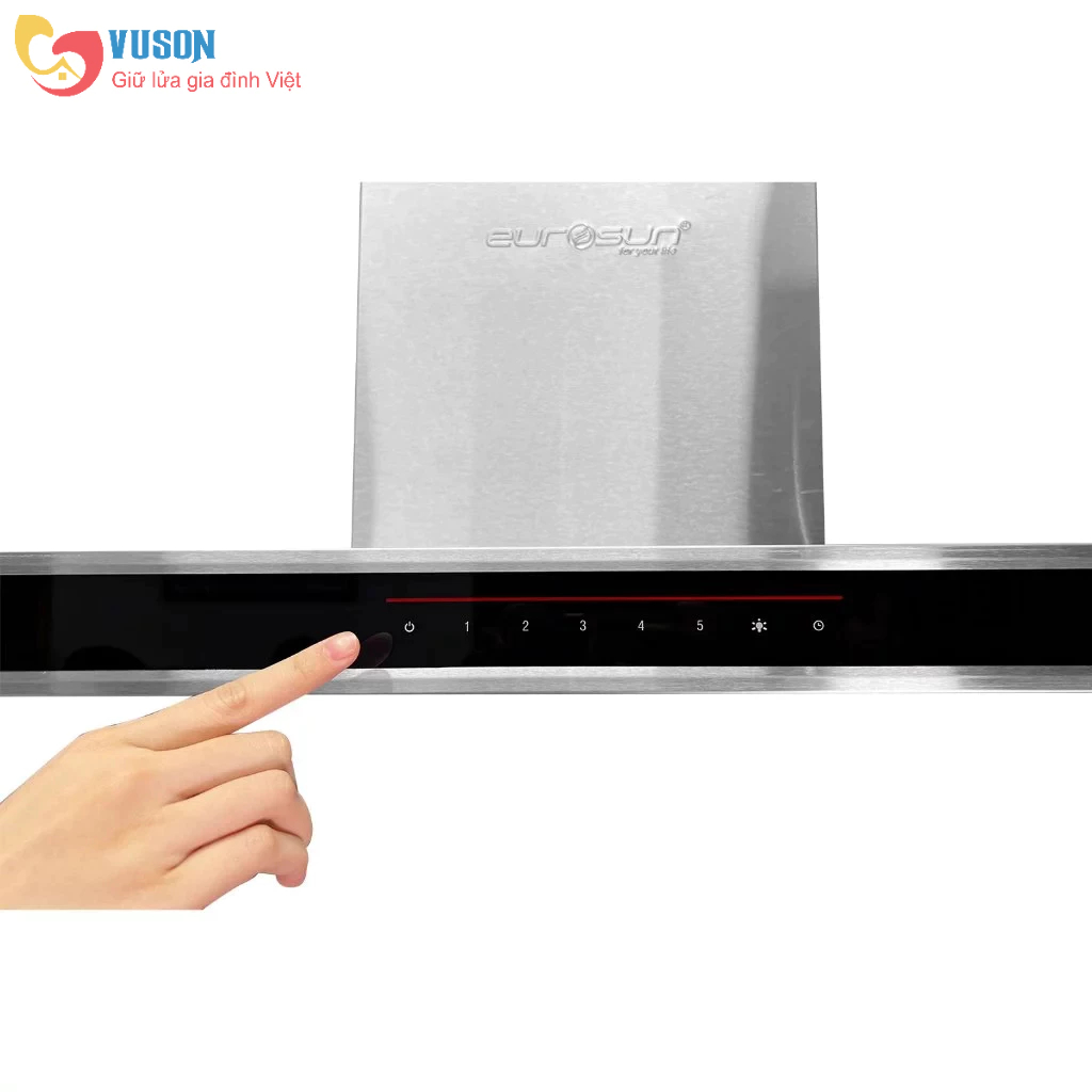 Tính năng cơ bản Máy hút khói gắn áp tường Chất liệu: Inox, kính đen Điều khiển cảm ứng, 5 tốc độ Thông số kỹ thuật: Công suất hút 850 m3/h Độ ồn: <63dB Công