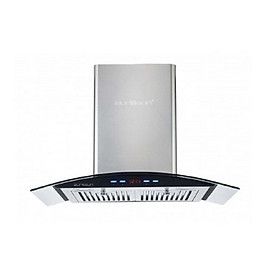 Kiểu máy kính gắn tường - mặt kính cong Chất liệu Inox - kính Màn hình LCD Điều khiển bằng cảm ứng - hẹn giờ tắt Khử mùi bằng than hoạt tính, ống thoát Ø150