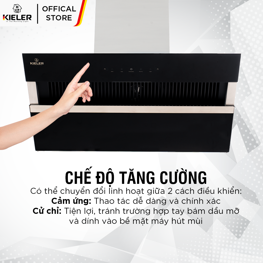 - Tên sản phẩm: Máy hút mùi KIELER KL-SUPER970 công suất hút cao, không gây tiếng ồn, kiểu vát kính sang trọng, điều khiển bằng cử chỉ