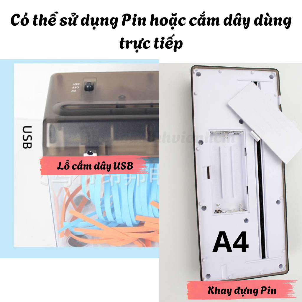Mua tại TiktokMáy cắt giấy sẽ giúp bạn cắt các tờ giấy thành các mảnh dài 3mm, phù hợp dùng trong các văn phòng, nhà trường, hay dùng cá nhân cũng rất tiện lợi. Hủy tài liệu quan trọng, tránh bị người khác thu thập. Cắt làm giấy đệm khi gói quà. Cắt giấy để giải trí khi làm việc căng thẳng. Máy cắt giấy sử dụng Điện hoặc Pin, không cần tốn sức