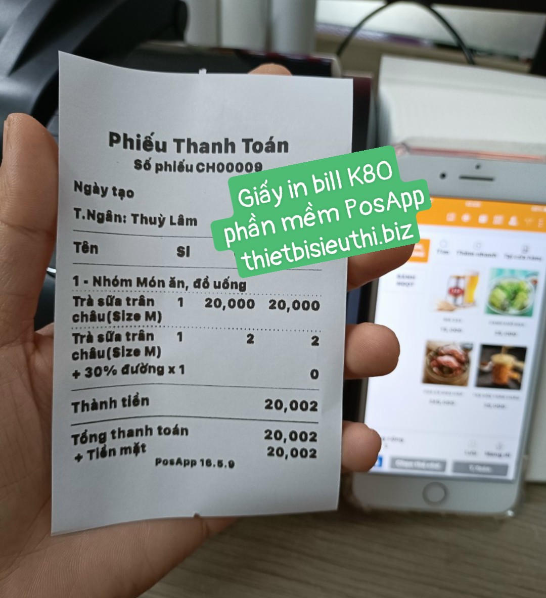 Dùng in hóa đơn bán hàng từ các app phần mềm bán hàng như: Sapo, Kiotviet, Loyverse, Sổ Bán Hàng, P