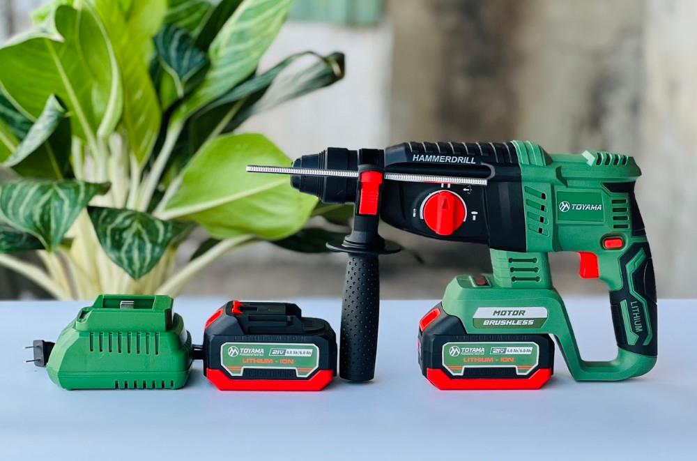 MÁY KHOAN ĐỤC BÊ TÔNG PIN 21V SIÊU KHỎE TOYAMA BT01| CẢ BỘ 2 PIN 21V/4AH + 1 SẠC | GIÁ HƠN 1 TRIỆU