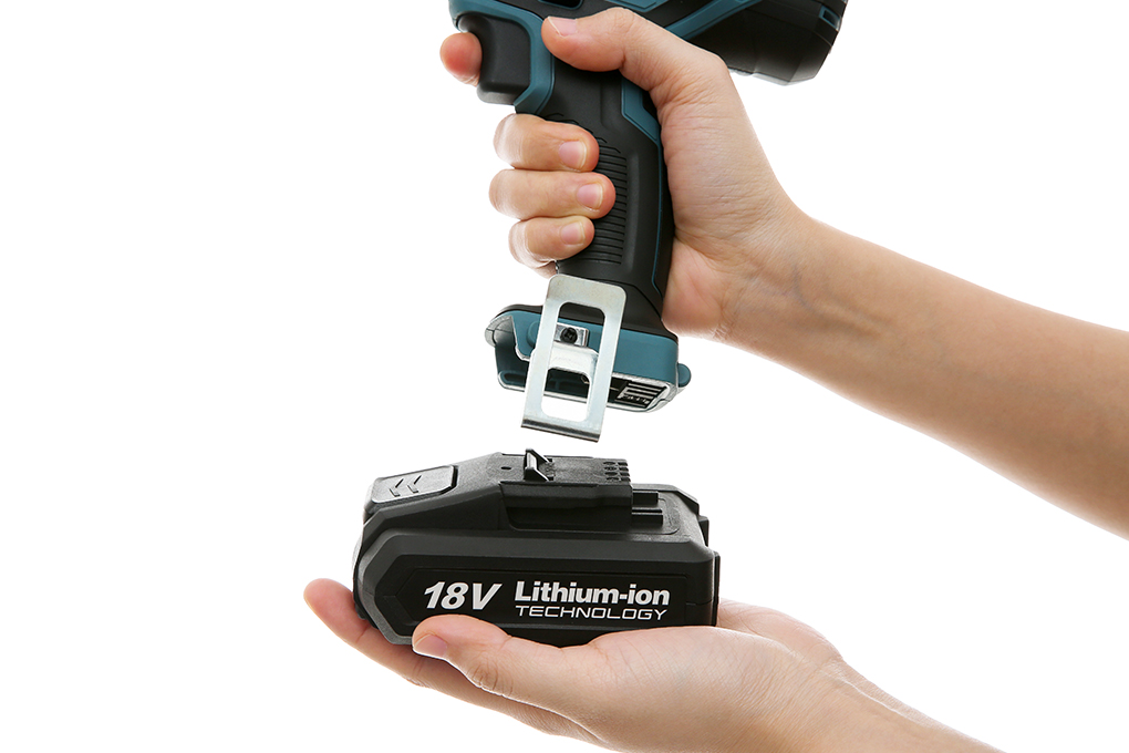 Máy khoan tay được trang bị pin Li-ion 18V giúp người dùng sử dụng máy mà không cần nối dây điện cũng như tránh vướng víu. Đồng thời pin li-ion còn mang đến khả năng vận hành bền bỉ và an toàn.