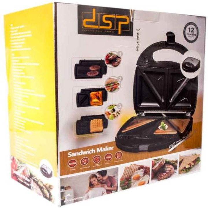 Máy Làm Bánh 3 Trong 1 nhãn hiệu DSP KC1049 Công suất: 750W - Hàng nhập khẩu - Máy làm bánh 3 trong 1 DSP KC1049 với 3 loại vỉ nướng đi kèm, bạn có