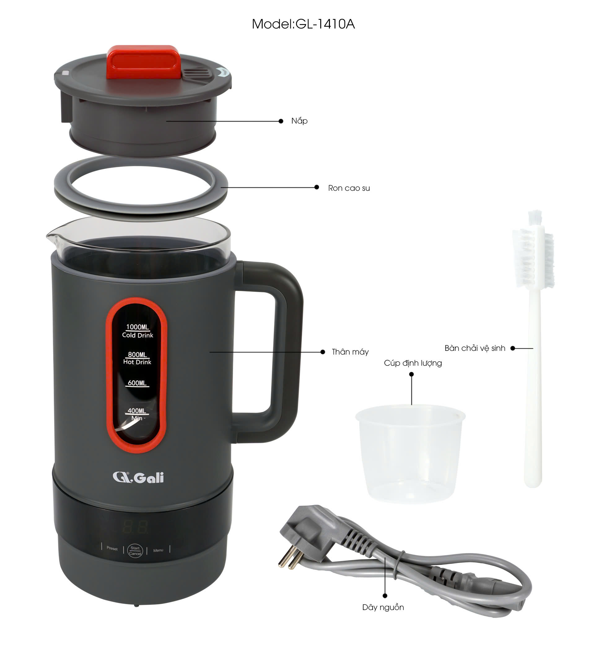 Máy làm sữa hạt Gali GL-1410B – Xay mịn, nấu nhanh, cực kỳ tiện lợi tại nhà!