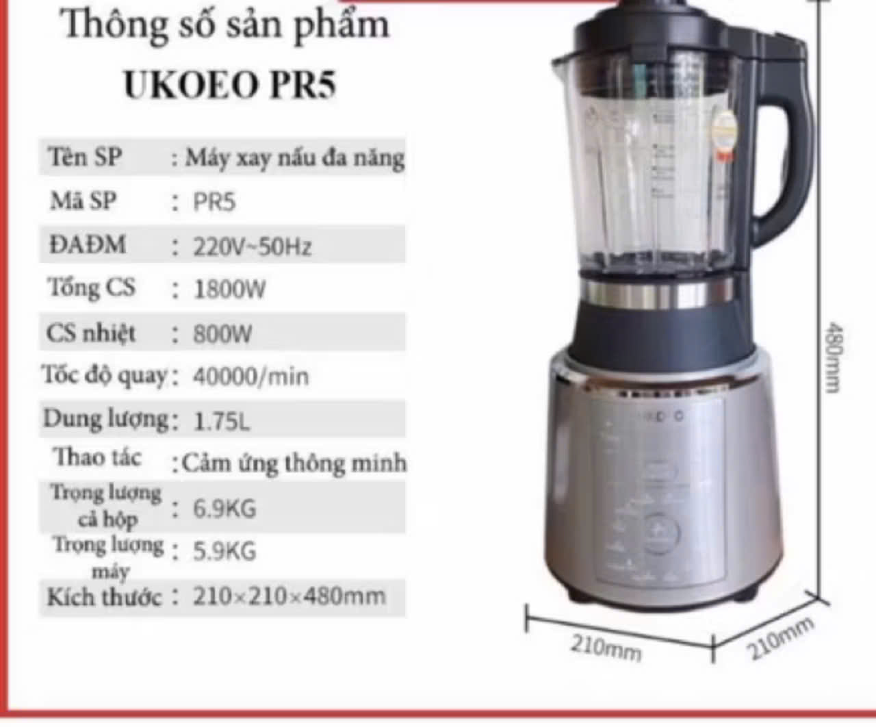 Mua tại TiktokUkoeo PR5 Plus - Models mới nhất năm 2023 Cái tiến nắp chống tràn inox, lồng hấp inox và cối chống dính THÔNG SỐ KỸ THUẬT