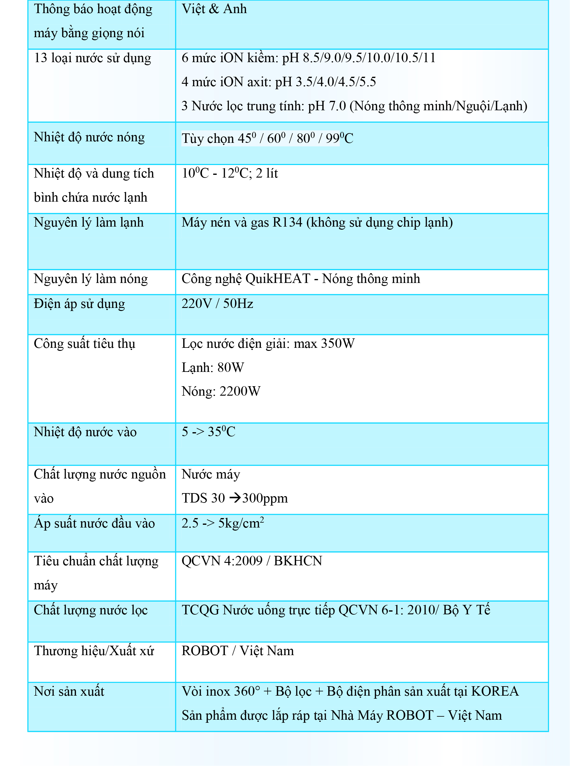 - Với mong muốn nhiều gia đình Việt có thể sử dụng nước điện giải iON kiềm với chi phí hợp lý để bảo vệ sức khỏe, sắc đẹp & nâng cao chất lượng cuộc sống, ROBOT mang đến sản phẩm “Chất lượng Quốc tế - Giá thành Việt Nam”, phù hợp với mức sống của nhiều người. Tiết kiệm cho người tiêu dùng đến hơn một nửa chí phí so với máy nhập khẩu chỉ từ 30 – 50%, nhưng sở hữu nhiều ưu điểm, tính năng vượt trội, chất lượng cao.