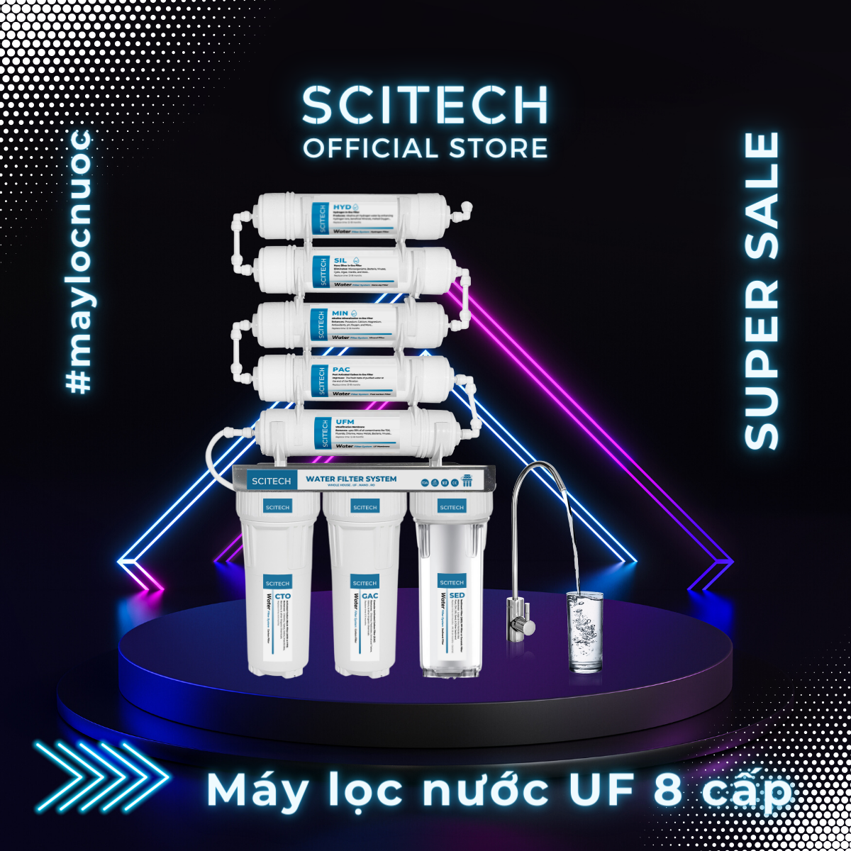 Máy lọc nước UF Scitech Ultrabox 4-5 cấp lọc giúp lọc sạch cặn bẩn, rỉ sét, rong rêu, chất hữu cơ và các tạp chất khác lẫn trong nước. Bộ lọc thích hợp dùng lọc