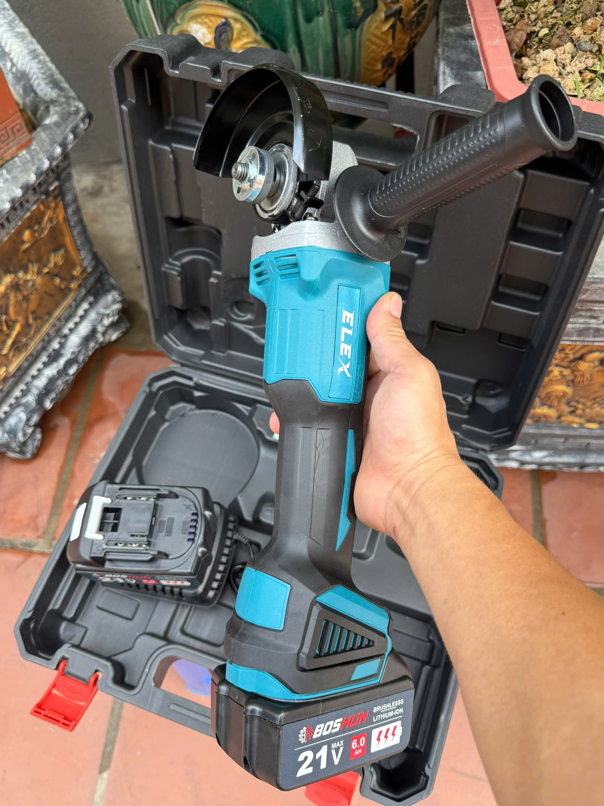 [REVIEW CHI TIẾT] Máy Mài Pin Boshun AG100BL - Không Chổi Than - Bộ 2 Pin 15Cell - Giá Siêu Rẻ