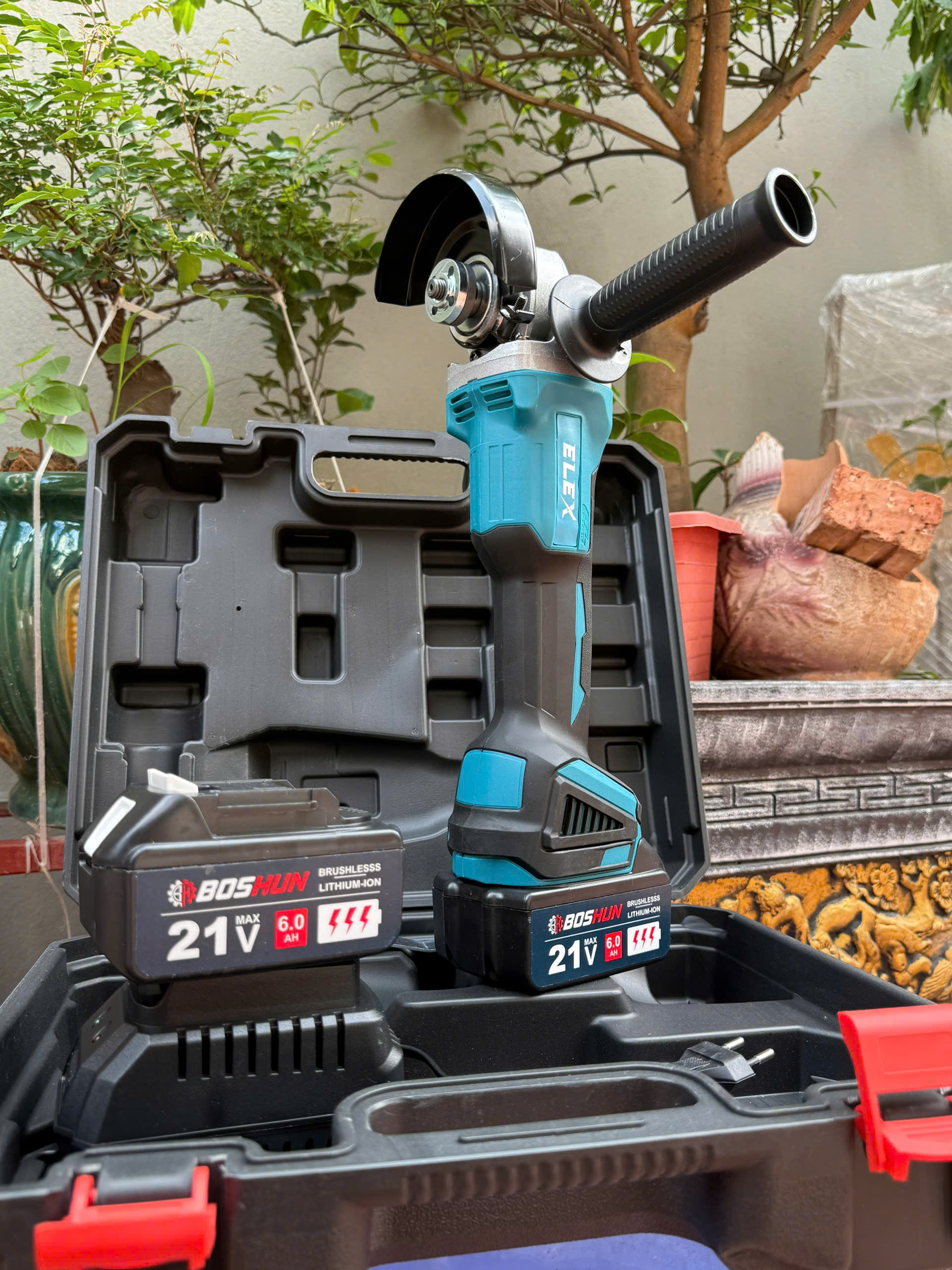 Máy mài pin ,Máy mài góc, Máy Cắt pin ELEX đùng Pin 10cell Boshun Động cơ không chổi than siêu bền, Có điều chỉnh tốc độ - Chức năng: mài góc, cắt sắt, cắt gỗ,