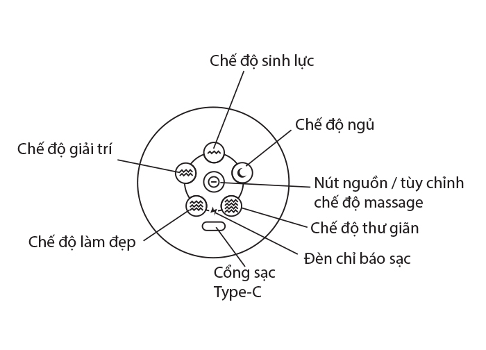 • Nhấn nhanh nút nguồn để chuyển đổi các chế độ massage: (1) Chế độ sinh lực - (2) Chế độ giải trí - (3) Chế độ làm đẹp - (4) Chế độ thư giãn- (5) chế độ ngủ. Kiểu rung và cường độ rung của mỗi chế độ là khác nhau, vui lòng chọn theo nhu cầu của riêng bạn.