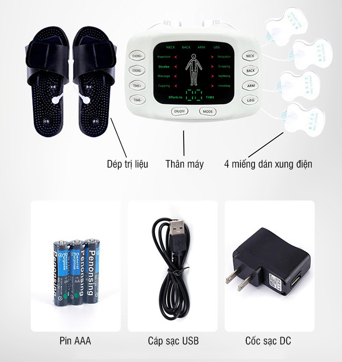 Tính năng sử dụng: Sử dụng được cùng lúc 2 miếng dán, đôi dép, 4 miếng dán, 6 miếng dán hoặc 4 miếng dán và đôi dép.