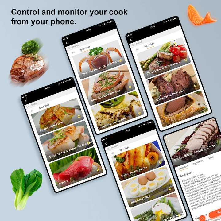 • Màn hình LCD lớn, dễ đọc, với chức năng “Bắt đầu trì hoãn” để thuận tiện cho công việc nấu nướng của bạn. Chỉ cần gắn nồi chính xác vào hộp chứa, thêm nước, cho thực phẩm vào túi kín và nhấn nút nguồn 3 giây để bật và bắt đầu nấu chỉ bằng một nút bấm trên thiết bị. Bộ hẹn giờ và điều khiển nhiệt độ chính xác của nồi sous vide cho phép bạn đi chơi và thư giãn trong khi thức ăn của bạn được nấu một cách hoàn hảo. Kết nối thông minh