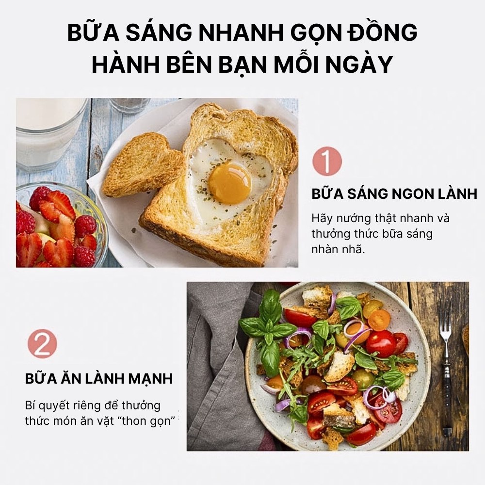 - Thiết kế tiện dụng: Lò nướng trang bị khay đựng bánh mì vụn, giữ cho gian bếp luôn sạch sẽ trong quá trình nướng bánh. Ngoài ra, thiết kế khay nướng có thể tháo rời, cùng bề mặt sản phẩm trơn láng, thuận tiện trong việc vệ sinh máy.