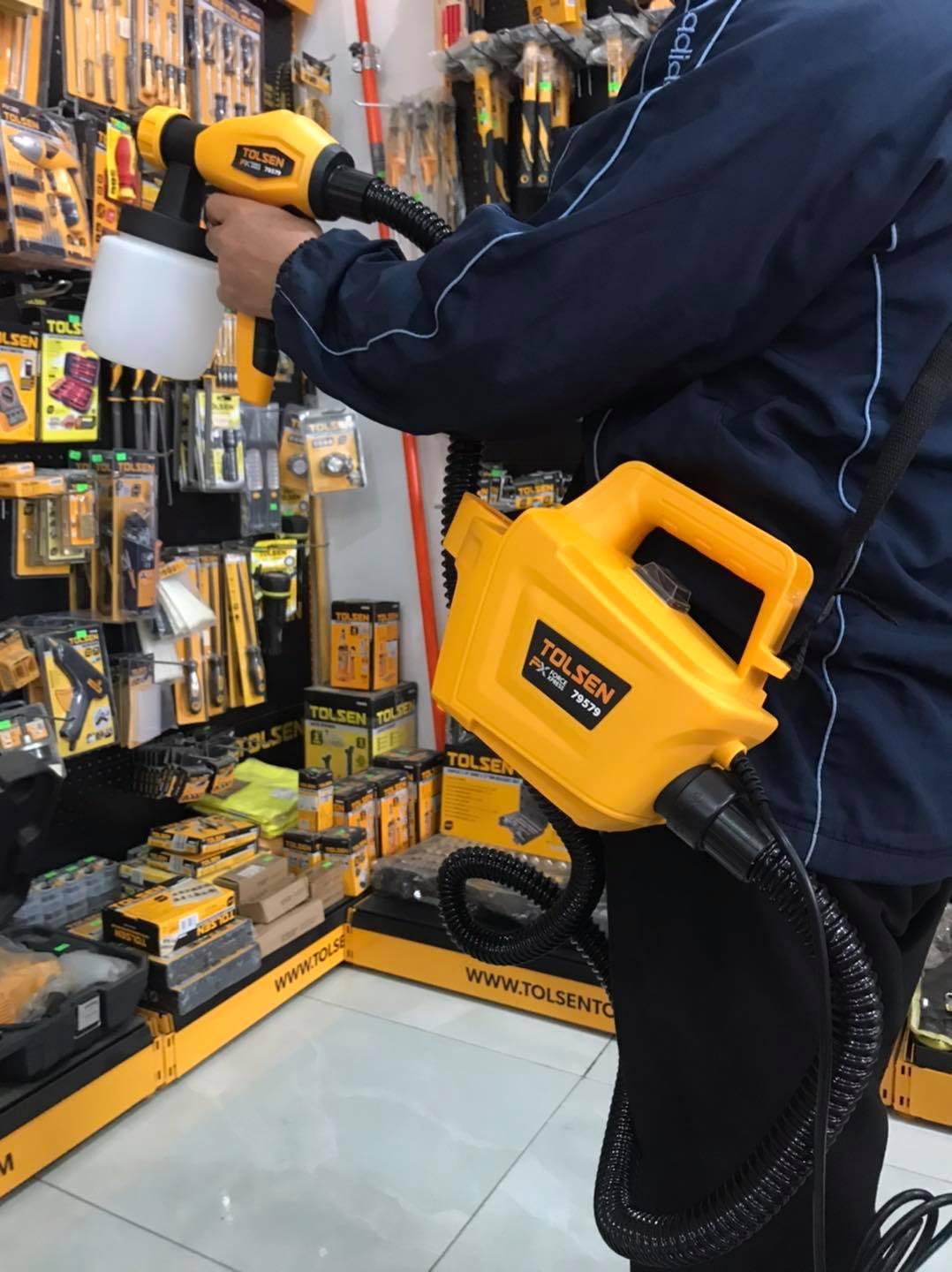 Súng phun sơn dùng điện TOLSEN 79578 được thiết kế khá nhỏ gọn, có tính linh hoạt cao nên dễ dàng mang theo khi cần thiết. với thiết kế tay cầm được bọc một lớp